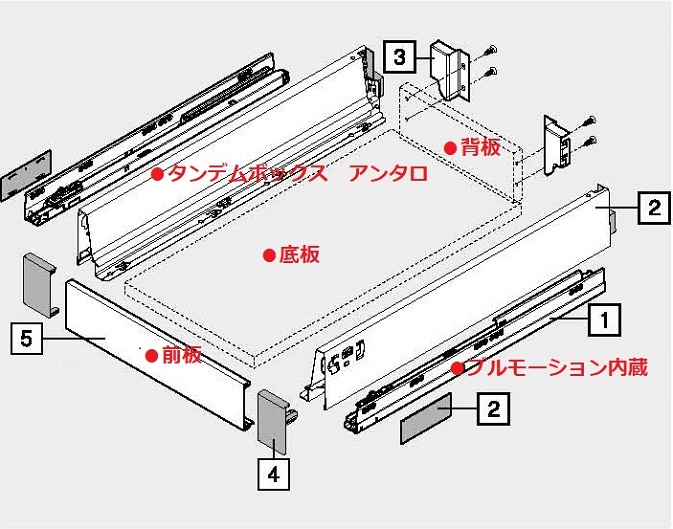 アルミ前板+底板(グラファイト色)+背板(グラファイト色)+タンデムボックス アンタロ(ブルモーション内蔵レール)